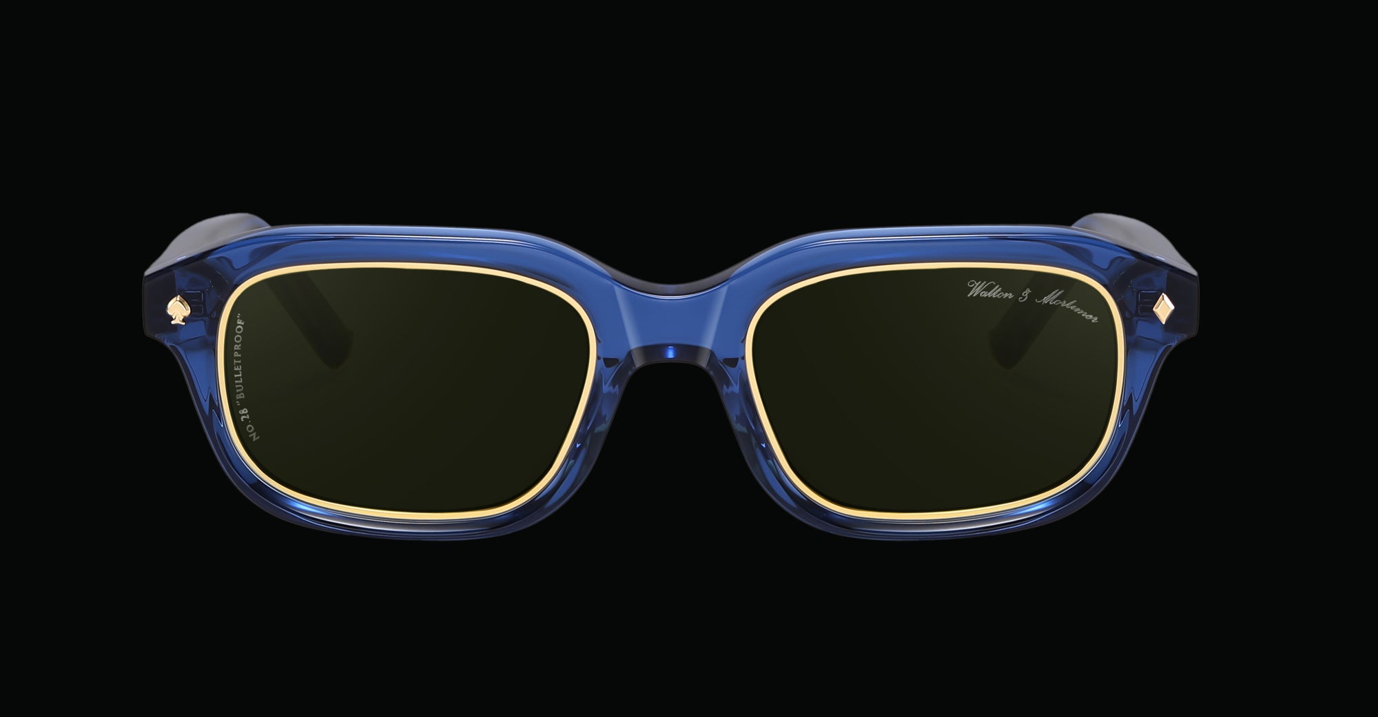 No.28 "Bulletproof" sunglasses belong to our exclusive Runway Collection. These high-quality, luxurious shades are made of 8 mm thick Italian acetate in the stunning Deep Sea Blue color, featuring Yellow Carl Zeiss lenses. Bulletproof represents Walton & Mortimer's commitment to luxury and high-end sunglasses. Key Features: 8 mm thick Mazzucchelli acetate, durable and stylish Deep Sea Blue frame.