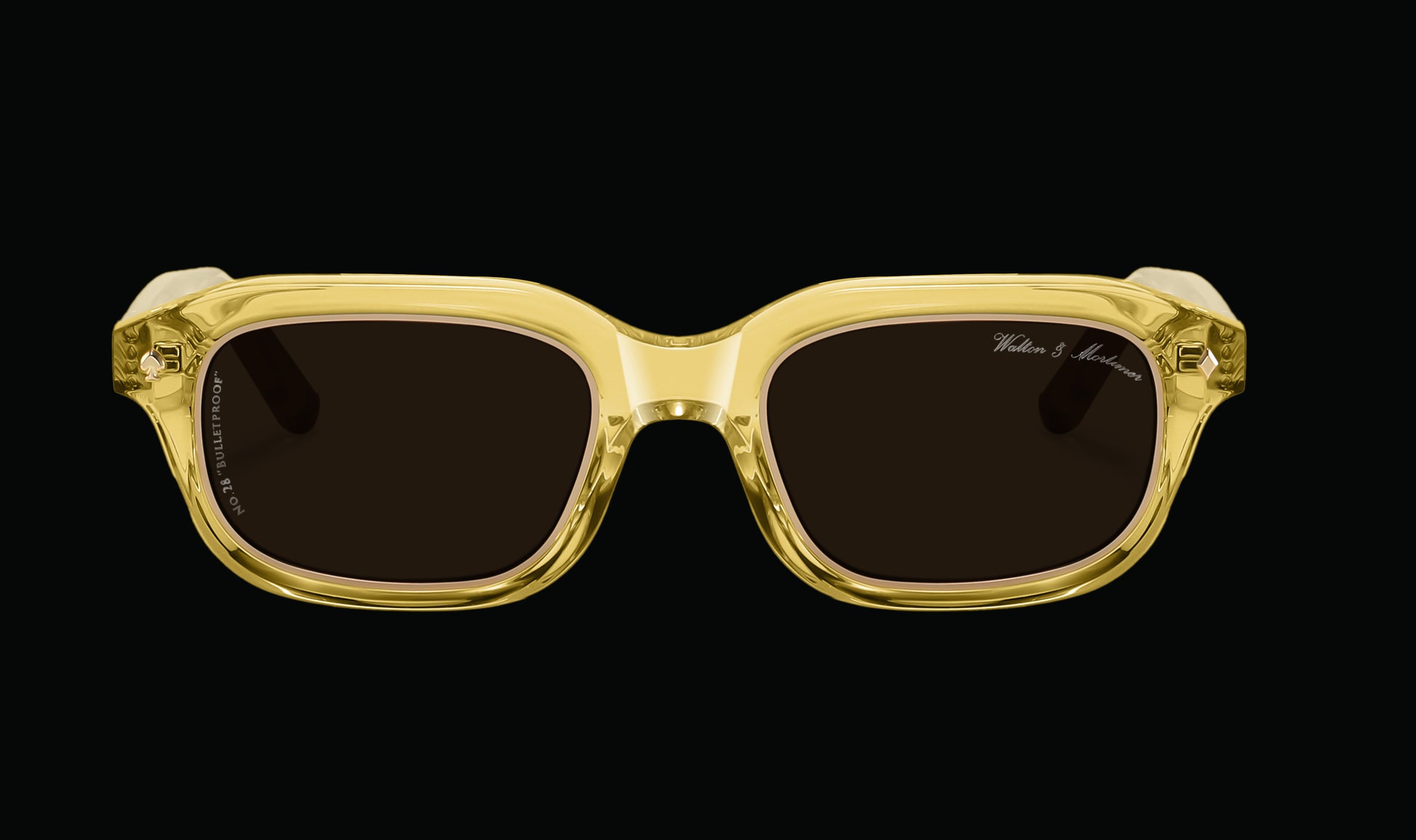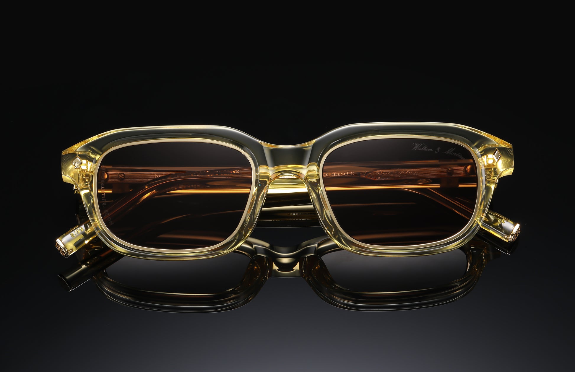 - Walton & Mortimer gold logo's on temples.